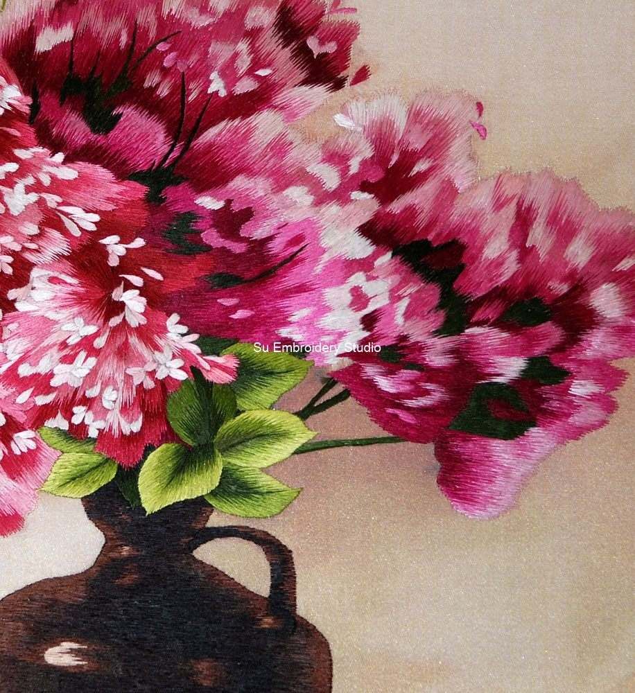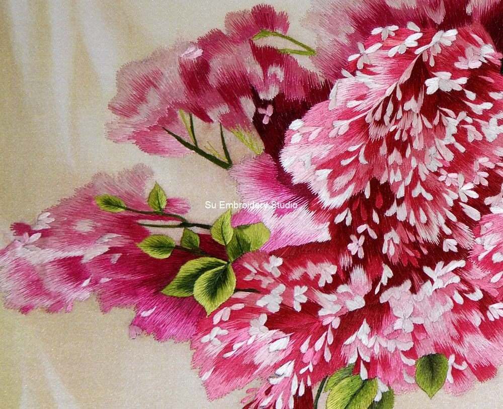It is all hand embroidered with fine silk threads by embroidery artists from Su Embroidery Studio in Suzhou, China.