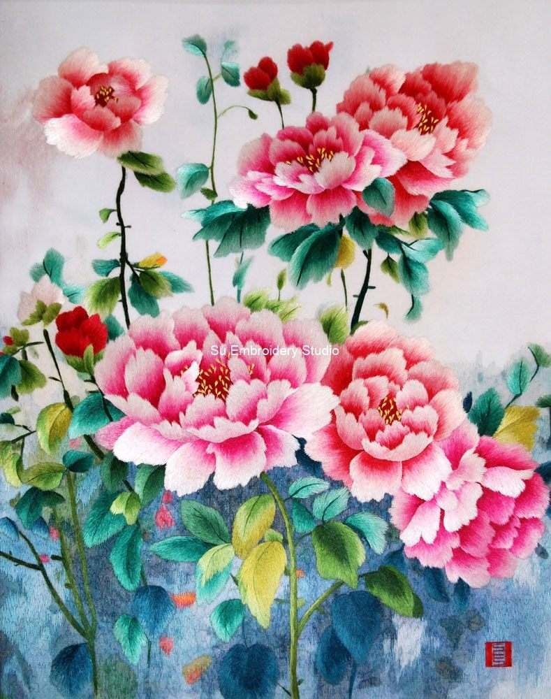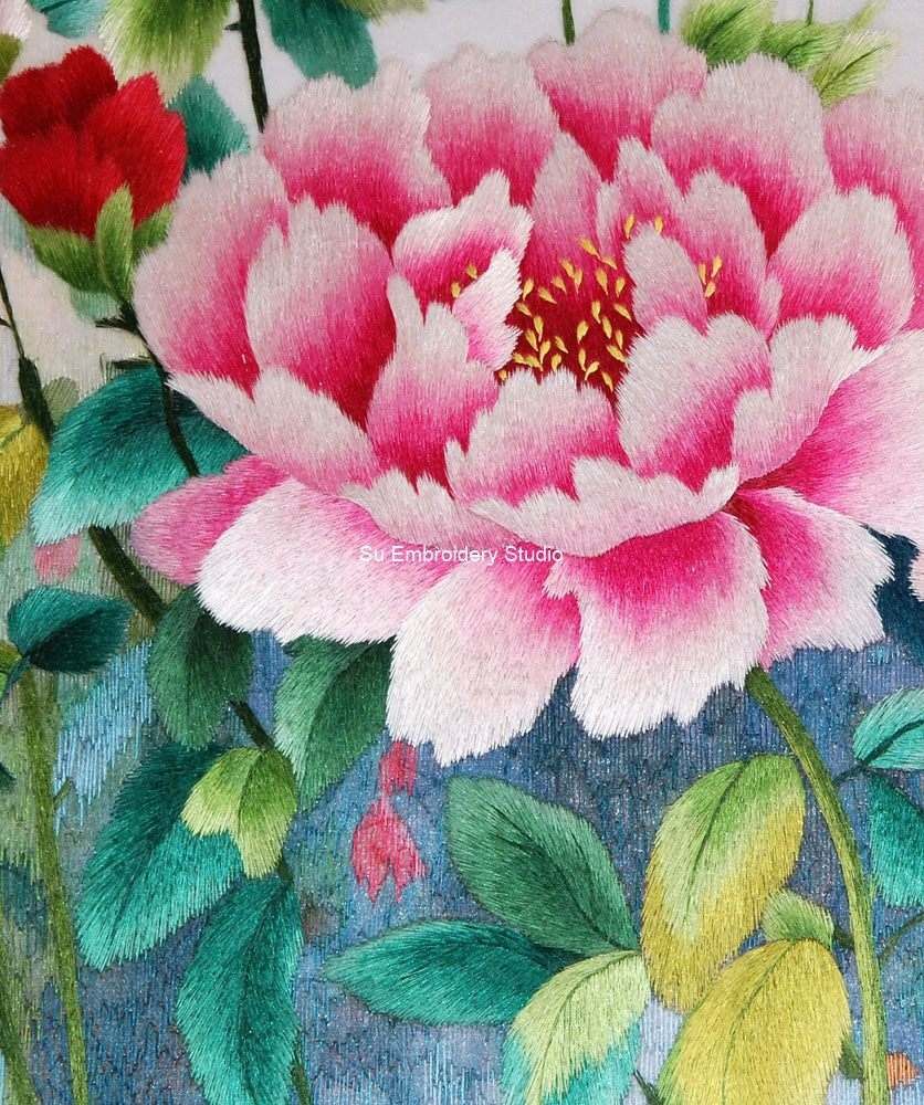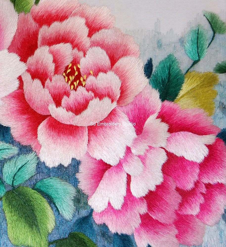 It is all hand embroidered with fine silk threads by embroidery artists from Su Embroidery Studio in Suzhou, China.