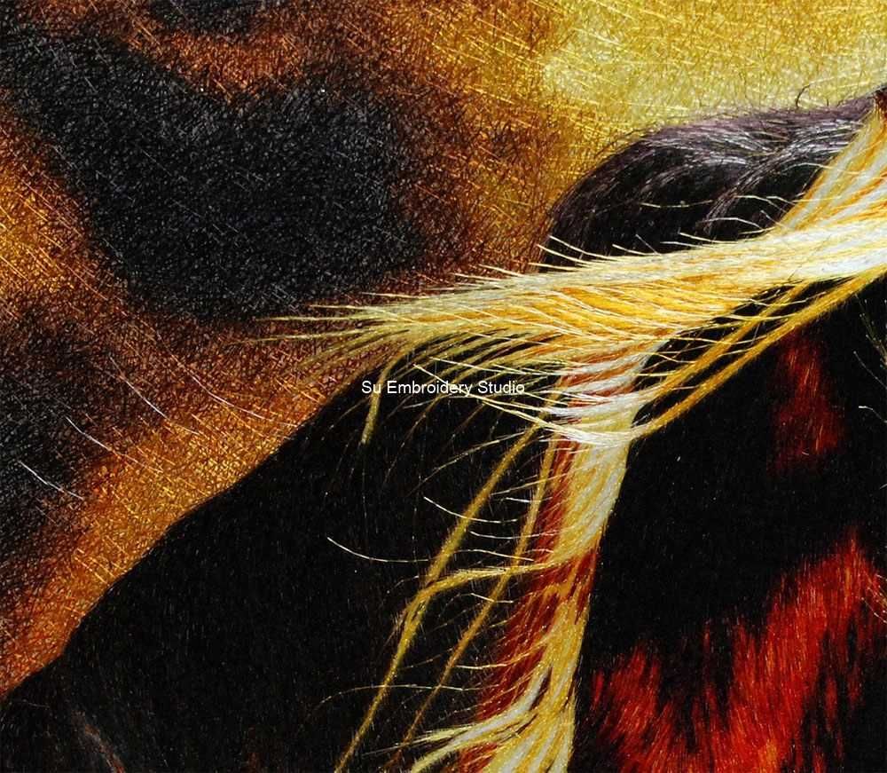 It is all hand embroidered with fine silk threads by embroidery artists from Su Embroidery Studio in Suzhou, China.