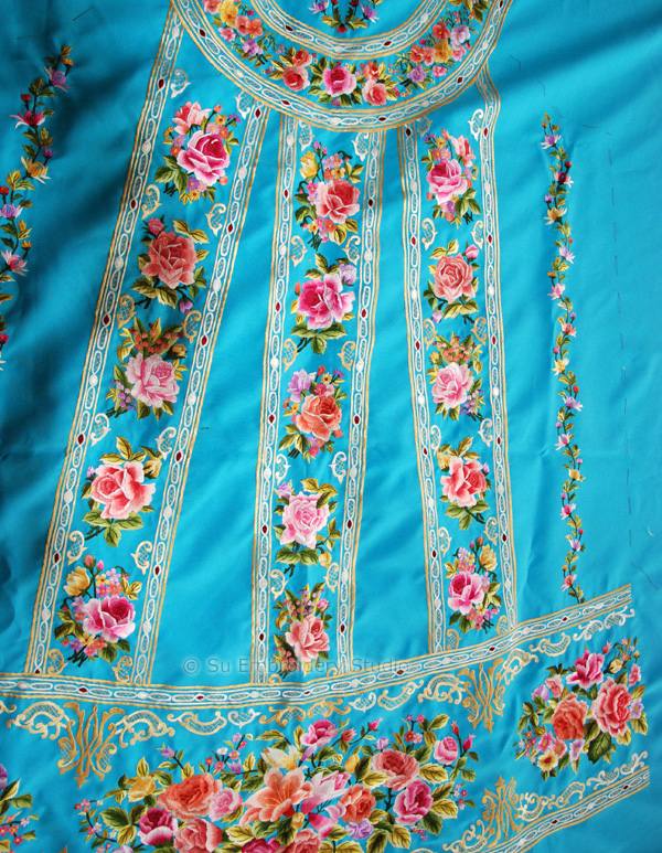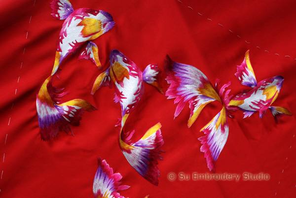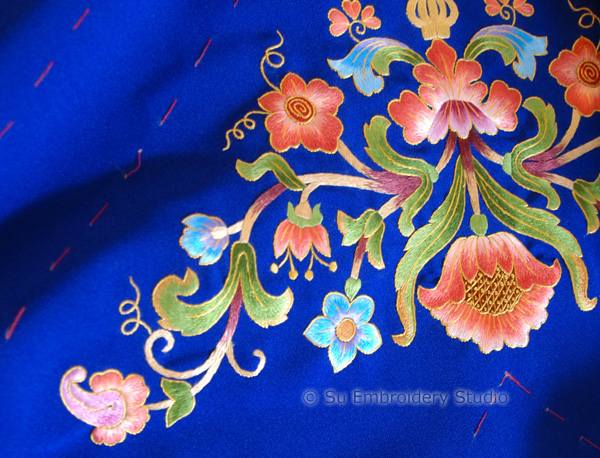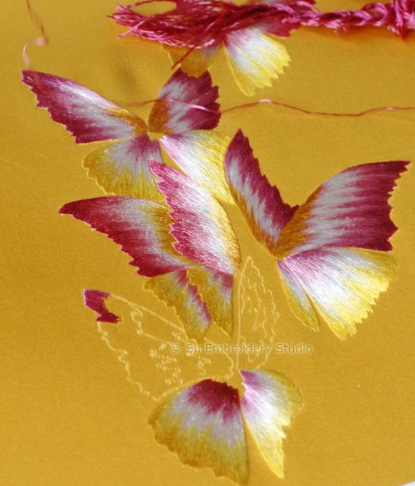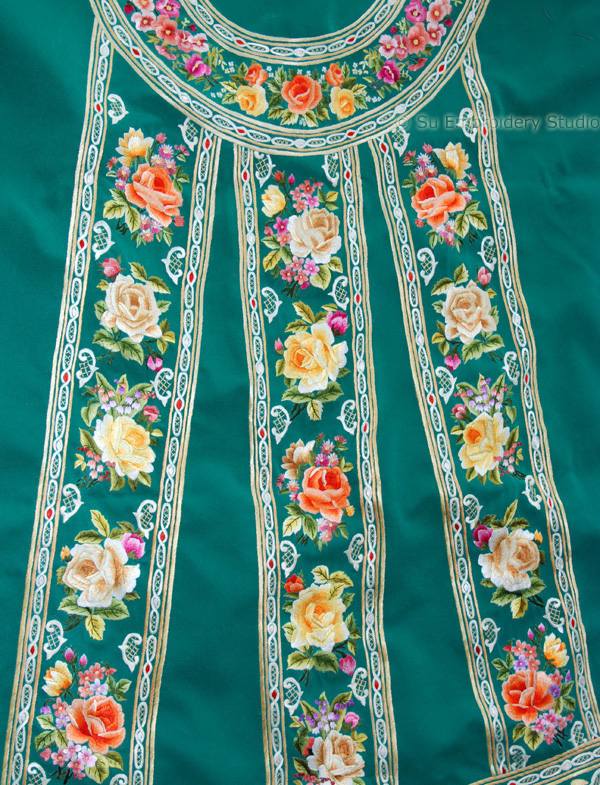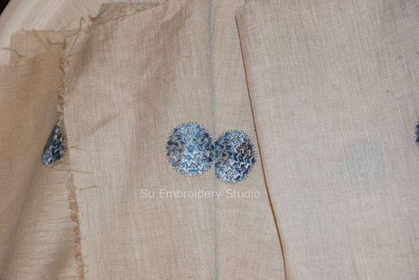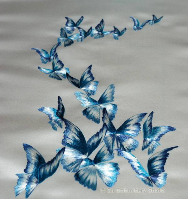 We had a perfect chance to show our hand embroidery skills to the public in 2014 when we worked with fashion designers and made a series of custom silk embroidered fabrics for their dresses that were showcased at London Fashion Week in 2014. This amazing work experience has greatly improved our ability to meet the different demands in hand embroidered fabrics from different designers.