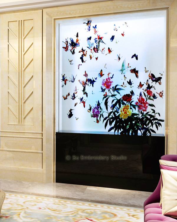 Revitalize your living space with silk embroidery art, whether it's a delicate silk embroidery curtain, an opulent silk embroidery headboard, or an exquisite silk embroidery panel serving as an elegant room divider.