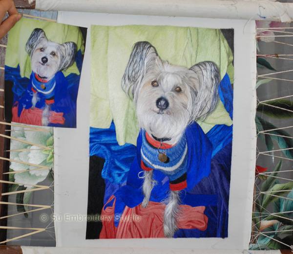 Looking for a custom embroidered portrait for your peronal photograph, a personalized embroidery portrait for your pet dog or cat, or custom embroidery service for photos that you think worth memorizing in a special art form, silk threads?