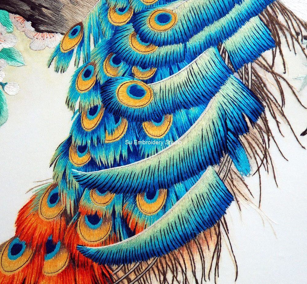 It is all hand embroidered with fine silk threads by embroidery artists from Su Embroidery Studio in Suzhou, China.