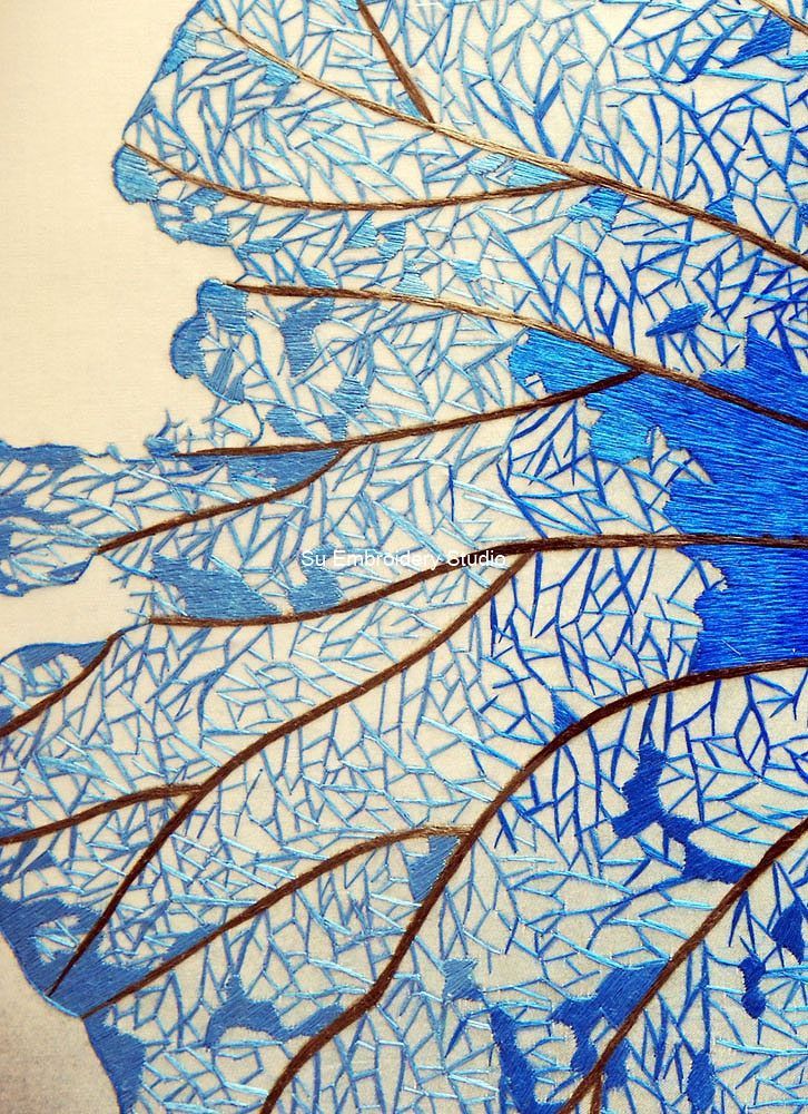 It is all hand embroidered with fine silk threads by embroidery artists from Su Embroidery Studio in Suzhou, China.